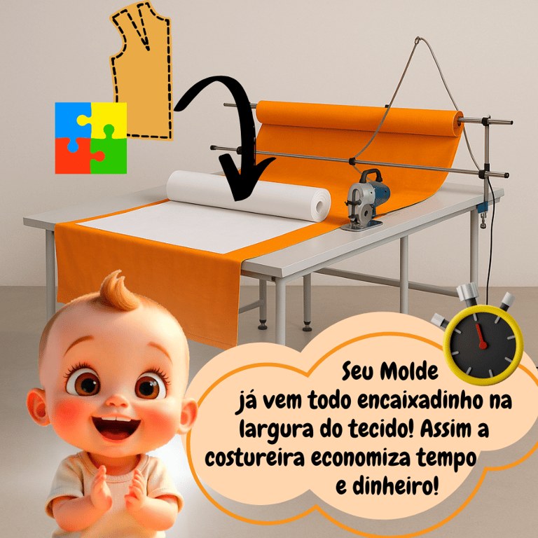 Você recebe o molde em tamanho real, pronto para usar, direto na sua casa. E pra facilitar ainda mais, também enviamos uma cópia digital por e-mail — assim, se um dia quiser reimprimir ou até enviar para uma modelista fazer ajustes, o arquivo já estará com você!