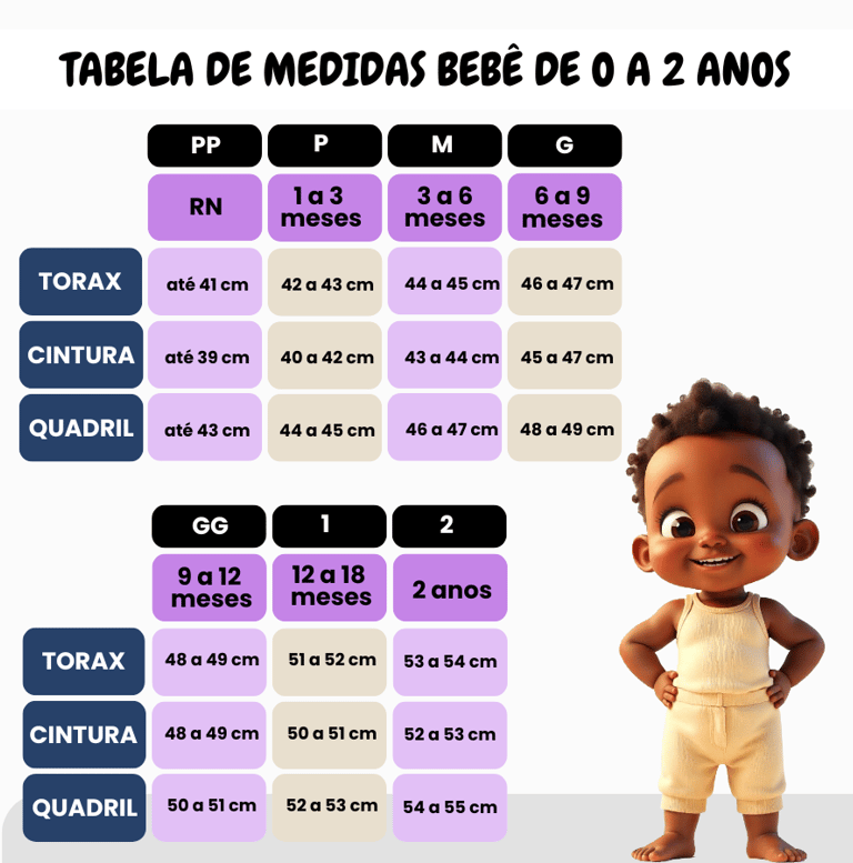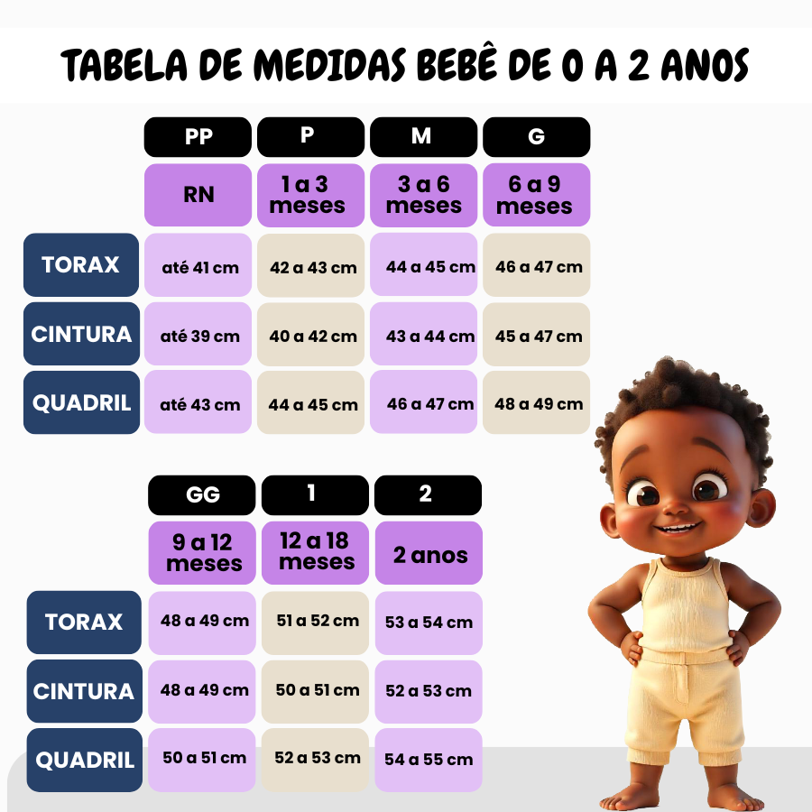 Do tamanho Recém-nascido ao 14, a medida certa de cada pedacinho do corpo está aqui!