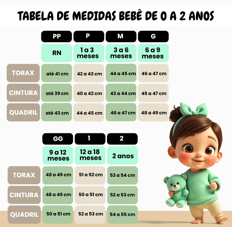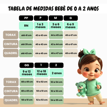Do tamanho Recém-nascido ao 14, a medida certa de cada pedacinho do corpo está aqui!