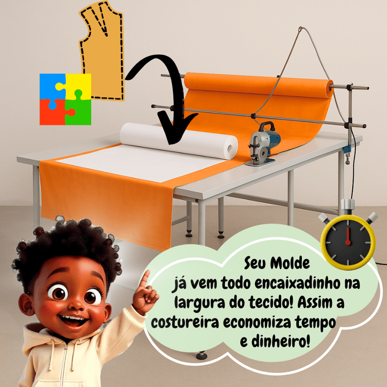 Você recebe o molde em tamanho real, pronto para usar, direto na sua casa. E pra facilitar ainda mais, também enviamos uma cópia digital por e-mail — assim, se um dia quiser reimprimir ou até enviar para uma modelista fazer ajustes, o arquivo já estará com você!