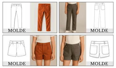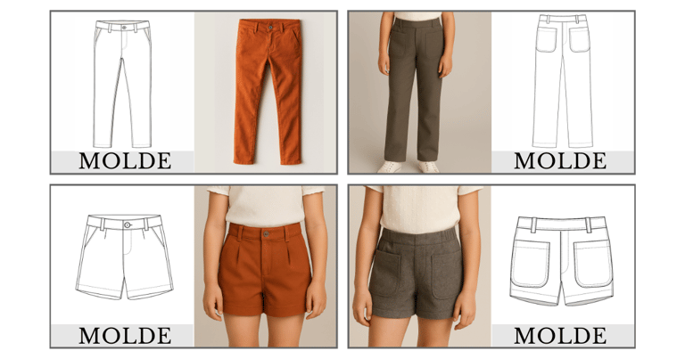 Kit com Moldes Inteligentes de Calças e Shorts Sociais para meninas — Personalize, Produza e Lucre com Elegância!
