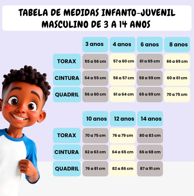 Do tamanho Recém Nascido ao 14, a medida certa de cada pedacinho do corpo está aqui!