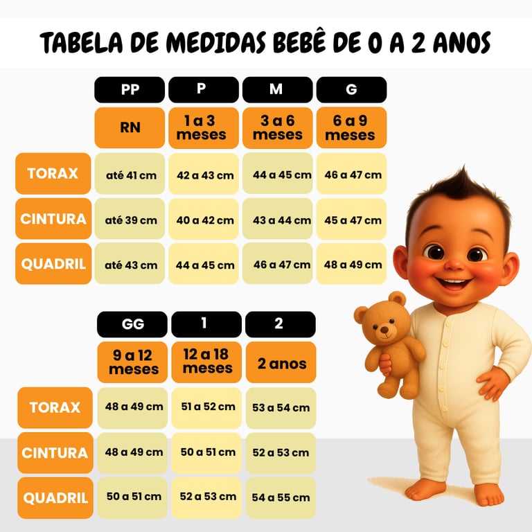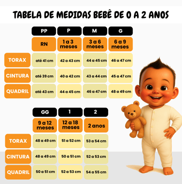 Do tamanho Recém-nascido ao 14, a medida certa de cada pedacinho do corpo está aqui!