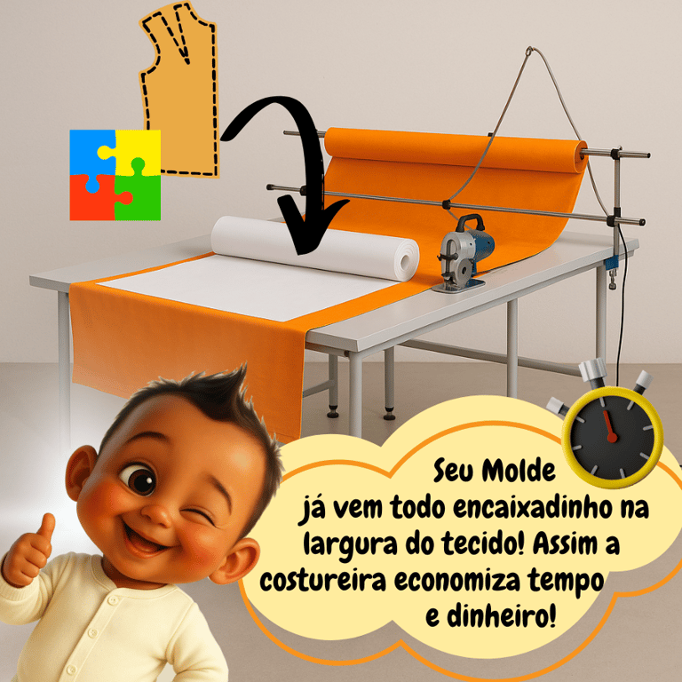 Você recebe o molde em tamanho real, pronto para usar, direto na sua casa. E pra facilitar ainda mais, também enviamos uma cópia digital por e-mail — assim, se um dia quiser reimprimir ou até enviar para uma modelista fazer ajustes, o arquivo já estará com você!