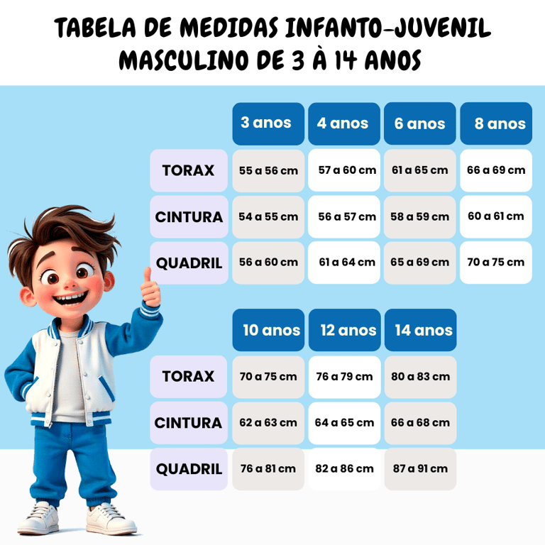 Do tamanho Recém-nascido ao 14, a medida certa de cada pedacinho do corpo está aqui!