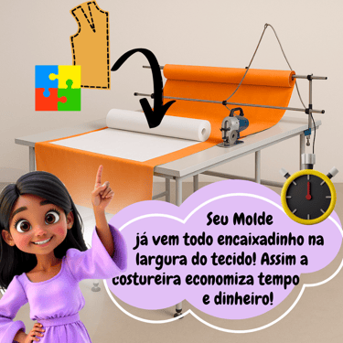 E o melhor: já vêm encaixados para a principal largura de tecido plano para este tipo de peça — até 1,50 m — evitando sobras, erros e prejuízos.