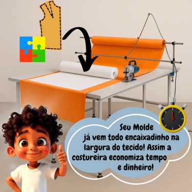 Você recebe o molde em tamanho real, pronto para usar, direto na sua casa. E pra facilitar ainda mais, também enviamos uma cópia digital por e-mail — assim, se um dia quiser reimprimir ou até enviar para uma modelista fazer ajustes, o arquivo já estará com você!