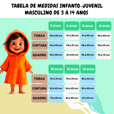 Escolha o tamanho (de 3 à 14 anos) e o formato: